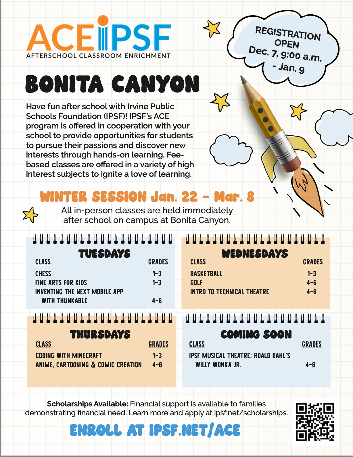 ACE Class Registration Open NOW Thursday, December 7, 2023 7:30 PM Tuesday, January 9, 2024 8:30 PM Google Calendar ICS